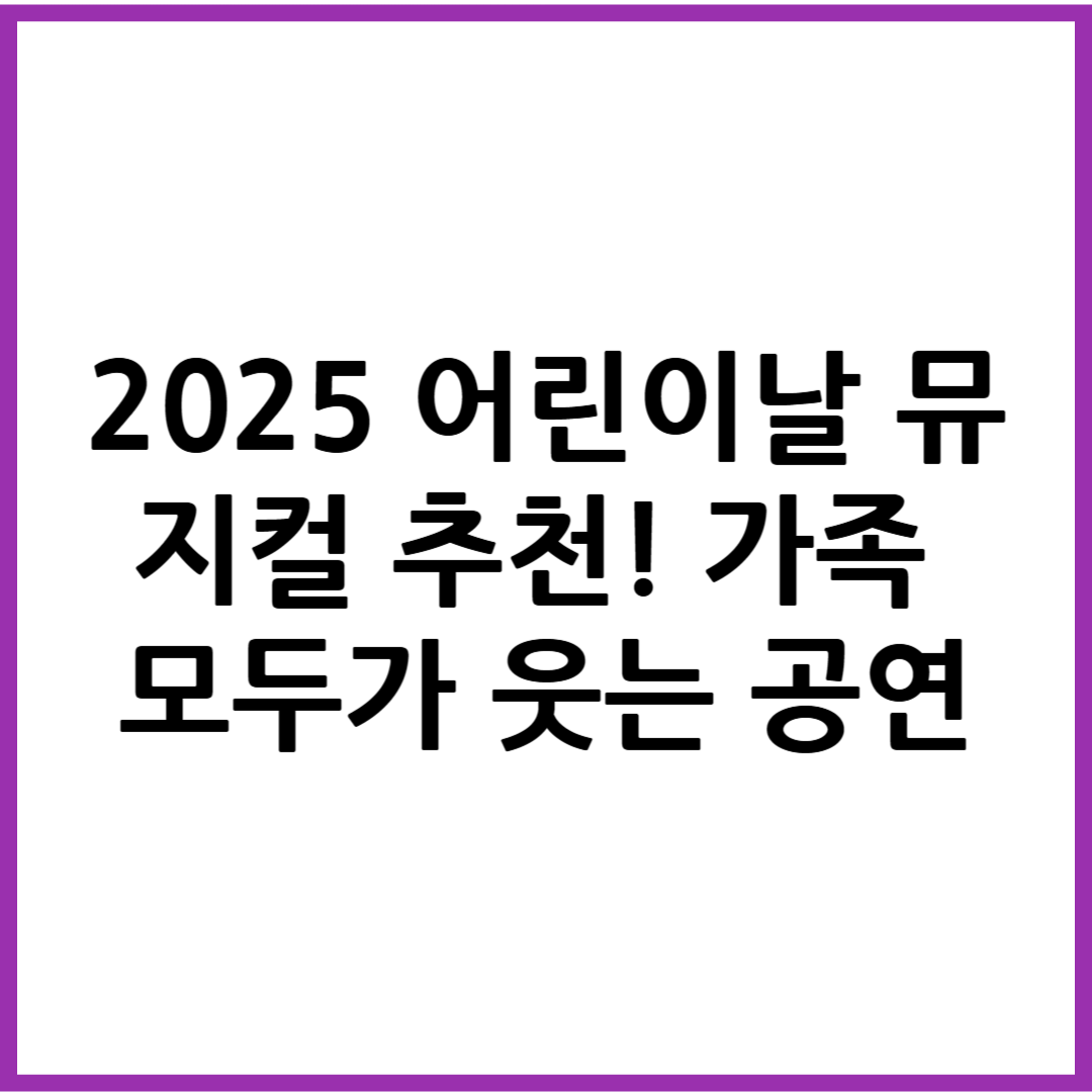 2025년 어린이날을 맞아, 가족 모두가 즐길 수 있는 어린이 뮤지컬 공연 추천과